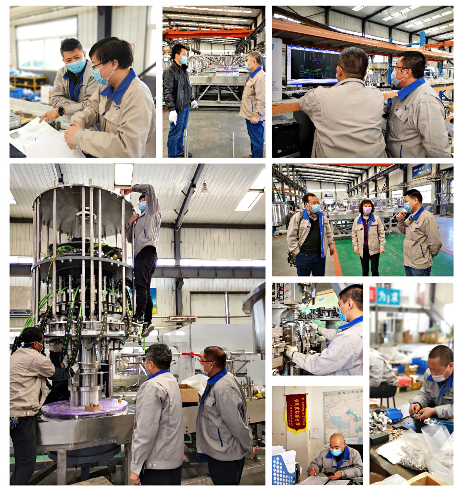 在這個春和景明,天清地明的時節(jié)里,國內(nèi)的疫情漸趨平穩(wěn),各行各業(yè)的生產(chǎn)生活也逐漸恢復(fù)。廊坊百冠,在嚴格防控疫情的前提下,把生產(chǎn)經(jīng)營推向了常態(tài)化的快車道。元氣森林的高速無菌線已進入精裝階段,國內(nèi)外的訂單均已陸續(xù)投產(chǎn)。為了趕工期,保質(zhì)量,抓進度,公司領(lǐng)導(dǎo)常駐一線,現(xiàn)場辦公。銷售、技術(shù)、生產(chǎn)、質(zhì)檢、售后、行政等各個系統(tǒng)全部調(diào)動起來,圍繞客戶的訂單統(tǒng)籌兼顧,全力以赴,進行了緊鑼密鼓的調(diào)度安排,開啟了熱火朝天的工作模式。